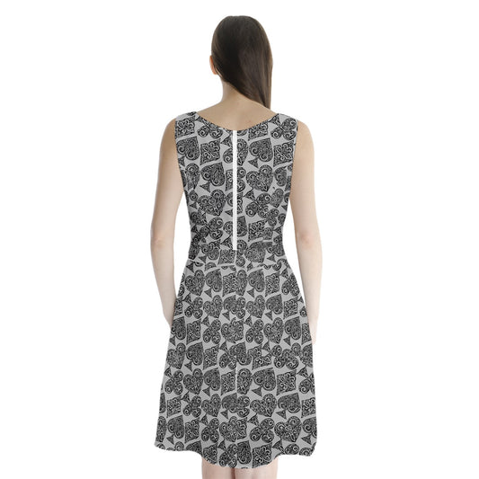 Playing Cards Gray Sleeveless Waist Tie Chiffon Dress
