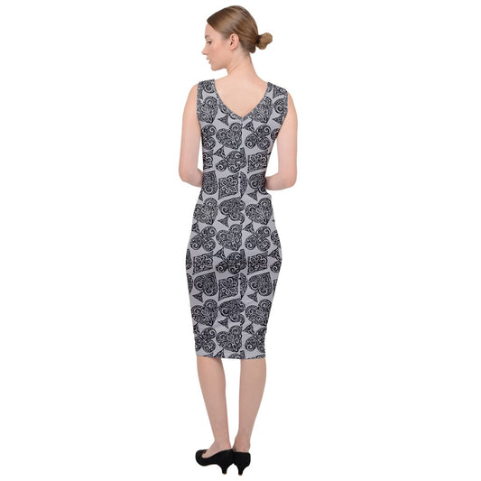 Playing Cards Gray Sleeveless Pencil Dress