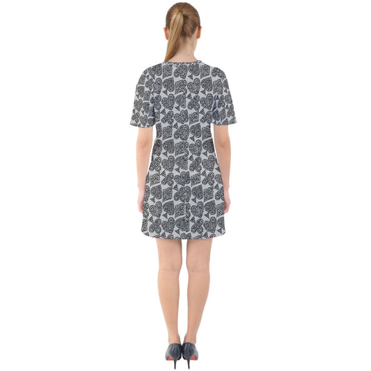 Playing Cards Gray Sixties Short Sleeve Mini Dress