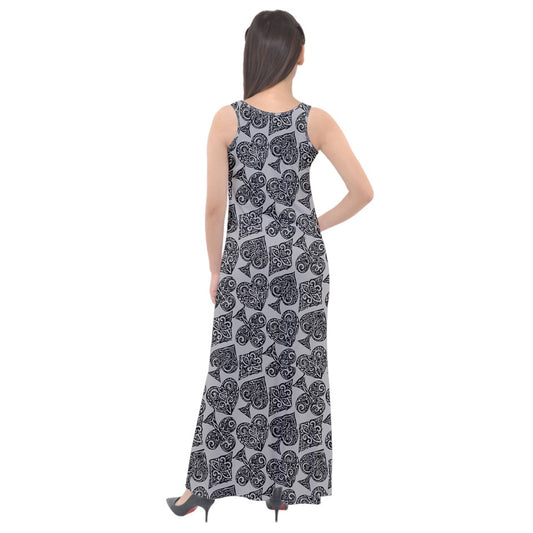 Playing Cards Gray Sleeveless Velour Maxi Dress
