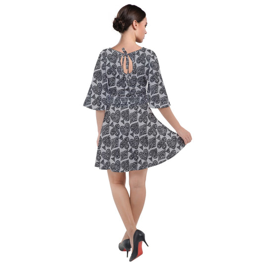 Playing Cards Gray Quarter Sleeve Pocket Dress