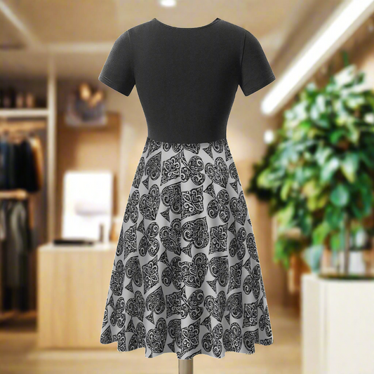 Poker | Black V-Neck Women Ruffle Bottom Dress