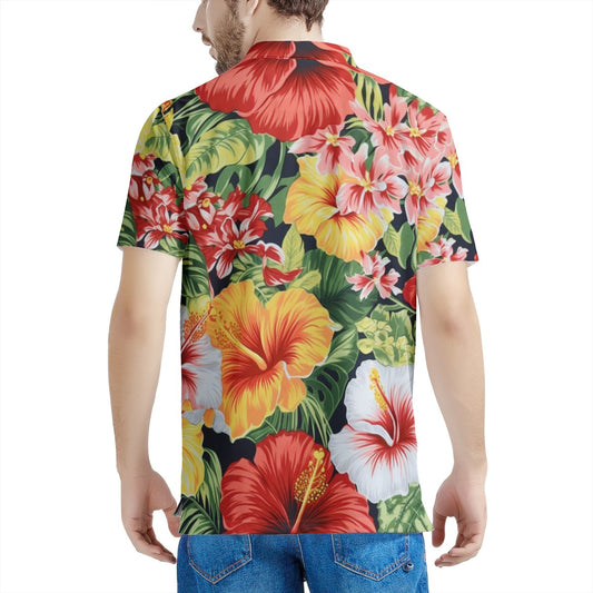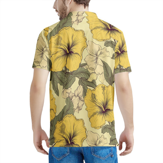 Yellow Hibiscus Men's All Over Print Polo Shirt