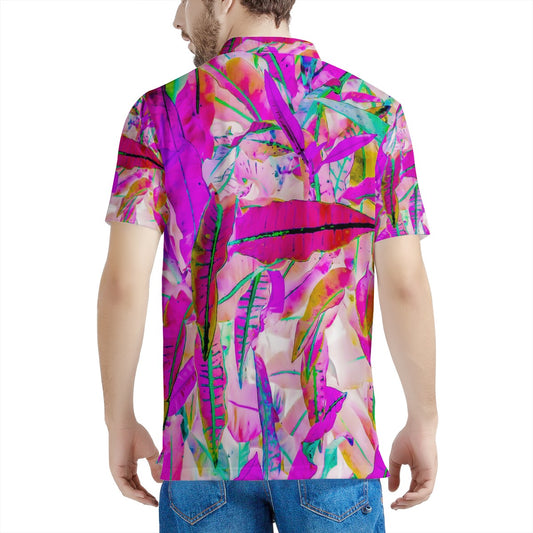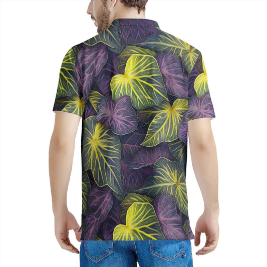 Luxtrini Iridescent Syngonium: Purple and Yellow Men's All Over Print Polo Shirt