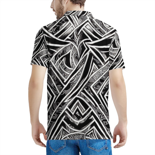 Black and White Polynesian Men's All Over Print Polo Shirt