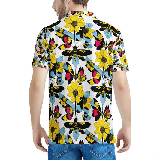 Bees and Sunflowers Men's All Over Print Polo Shirt