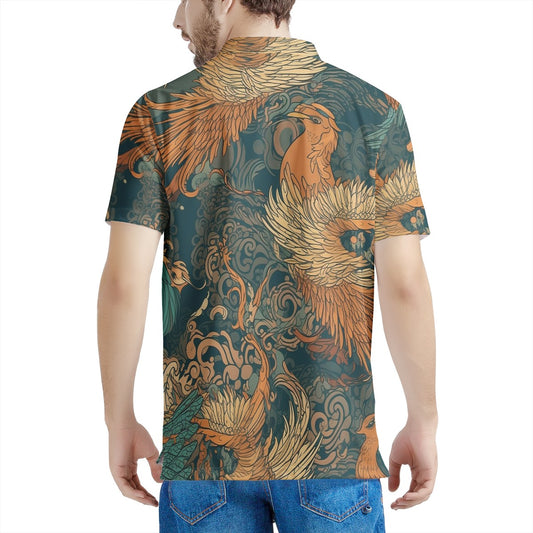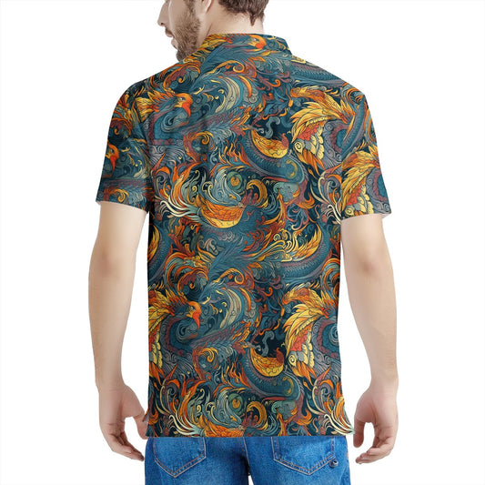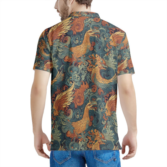 Experience the magic of ancient Chinese mythology with our exquisite Dragon and Phoenix Men's All Over Print Polo Shirt