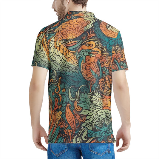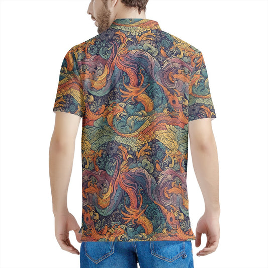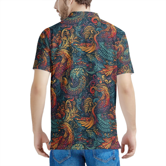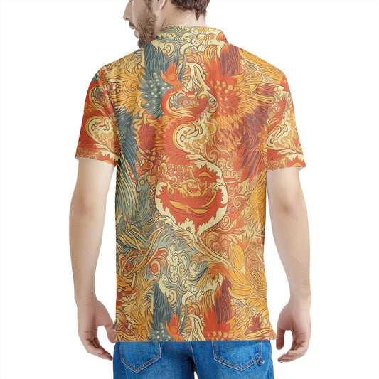 The Dragon and Phoenix are a harmonious duo, representing a balance of power and grace. Men's All Over Print Polo Shirt