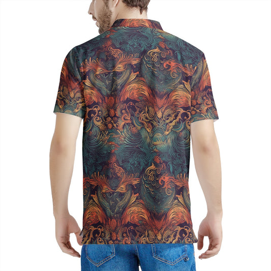 Majestic Dragon and Graceful Phoenix Men's All Over Print Polo Shirt