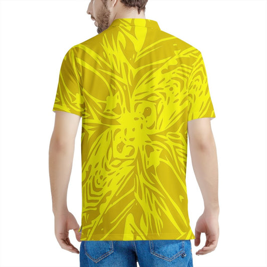 Yellow Fern Vector Abstract Men's Aloha Polo Shirt