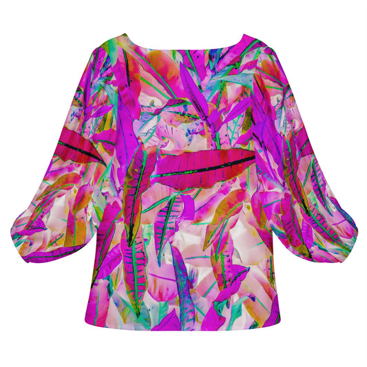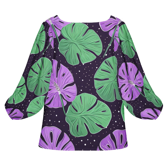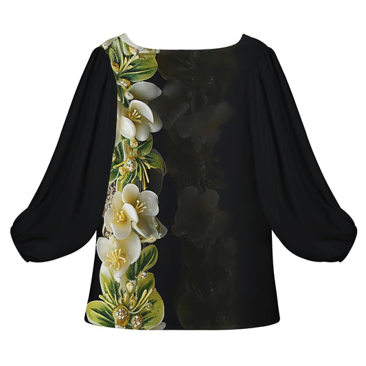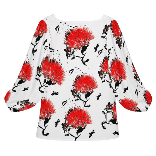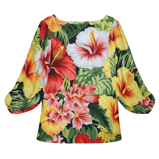 Hibiscus Women Long Sleeve Puff Sleeve Blouse