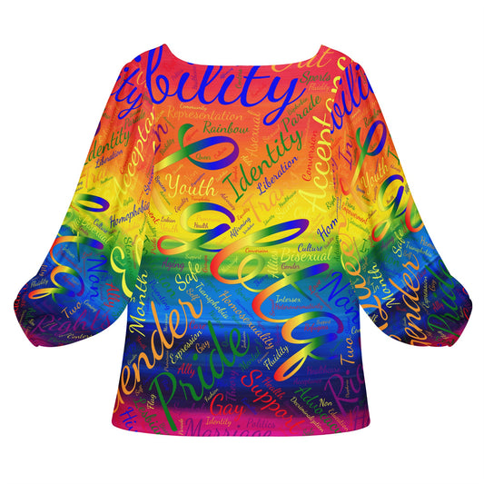 LGBTQ Word Cloud Women Long Sleeve Puff Sleeve Blouse
