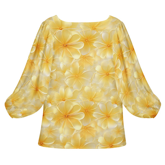 Yellow Plumeria Women Long Sleeve Puff Sleeve Blouse