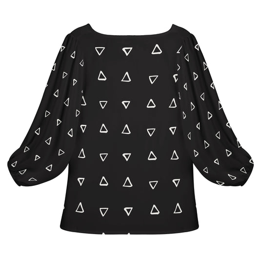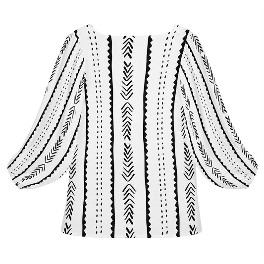 African Ethnic Mudcloth #19 Women Long Sleeve Puff Sleeve Blouse
