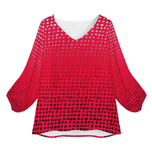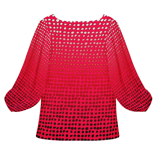 African Ethnic Mudcloth #7 Red Gradient Women Long Sleeve Puff Sleeve Blouse