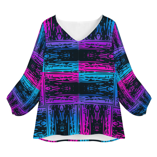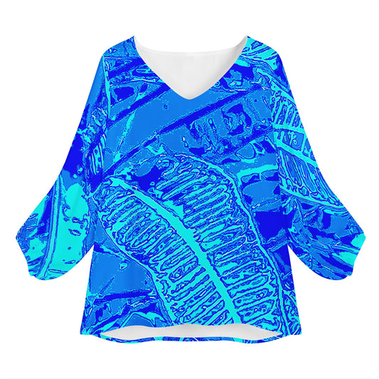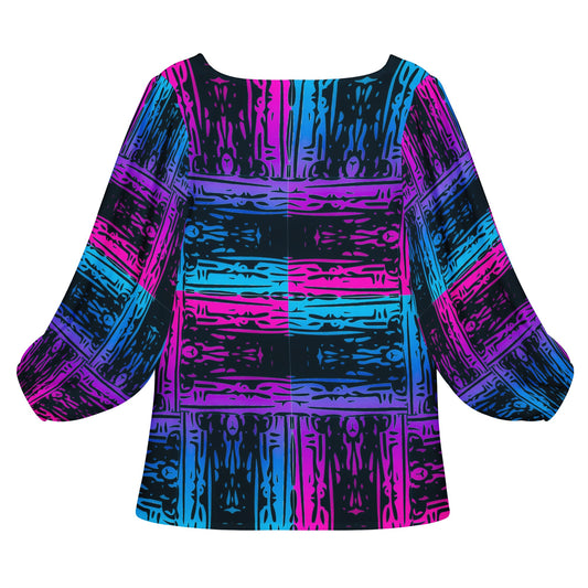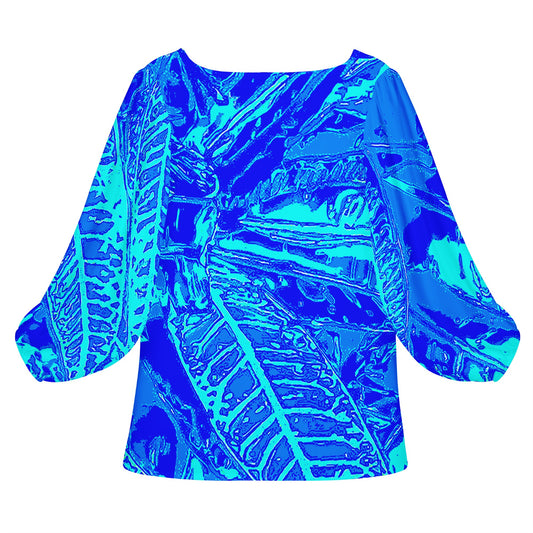 Vibrant Blue Croton Pattern Women Long Sleeve Puff Sleeve Blouse
