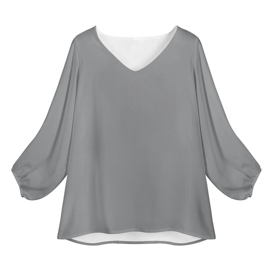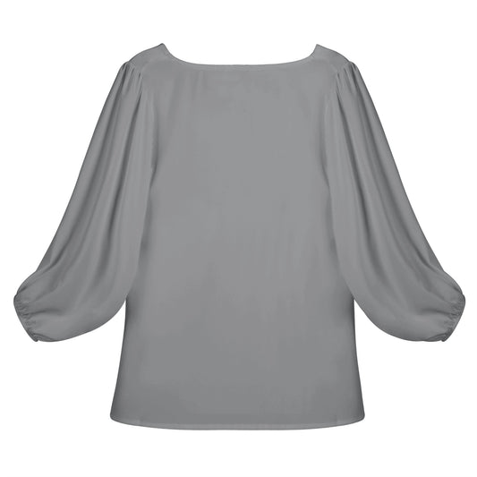 Silver Gray Women Long Sleeve Puff Sleeve Blouse