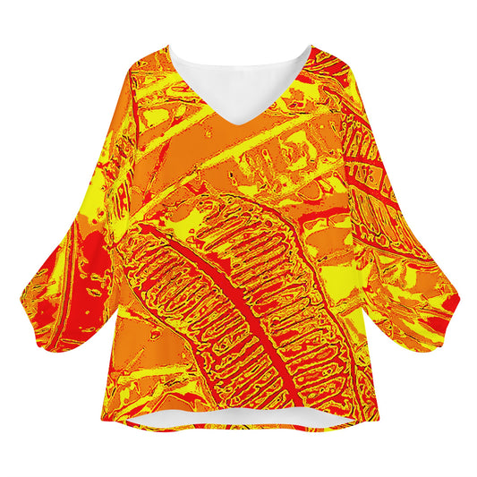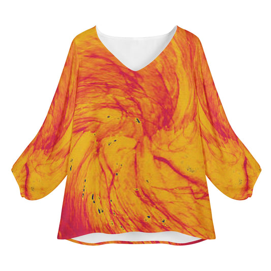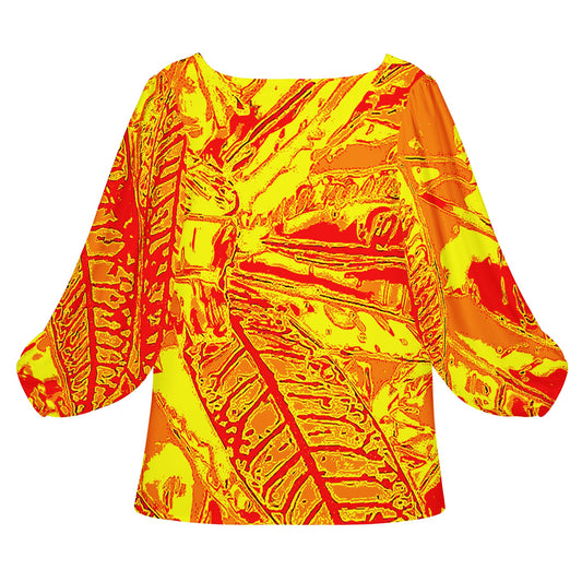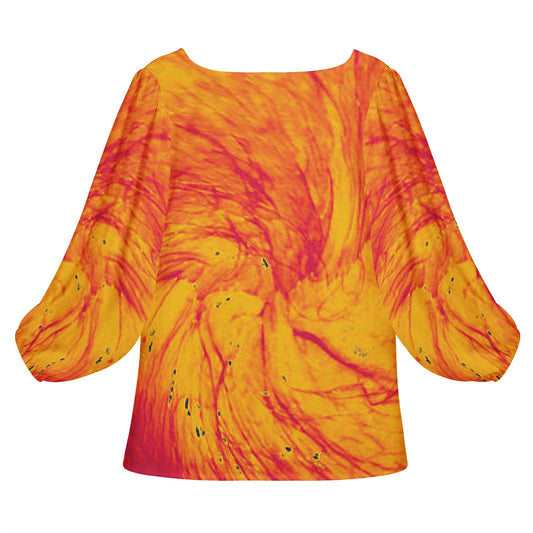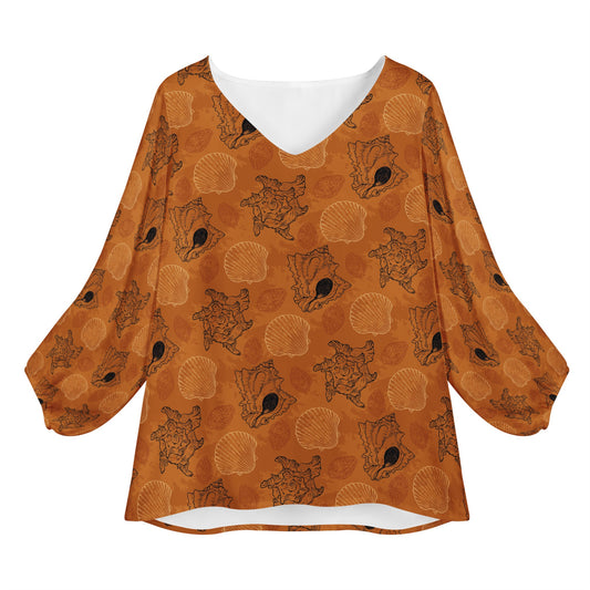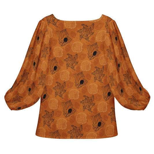 SeaShell Ocean in Orange Women Long Sleeve Puff Sleeve Blouse
