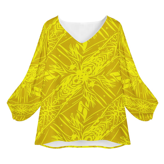 Yellow Fern Women Long Sleeve Puff Sleeve Blouse