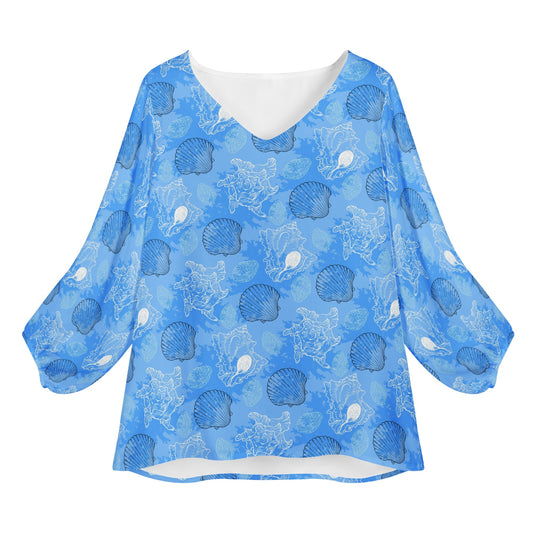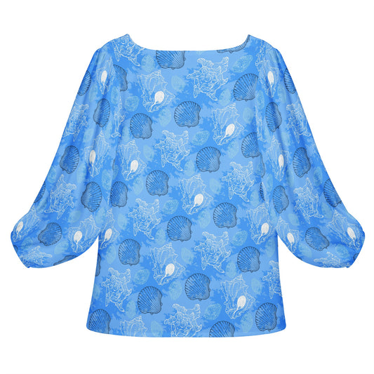 Blue Seashell Ocean Women Long Sleeve Puff Sleeve Blouse
