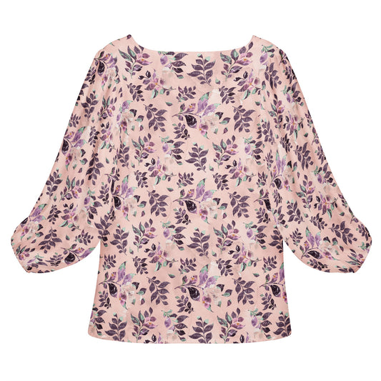 Petunia Flower Women Long Sleeve Puff Sleeve Blouse