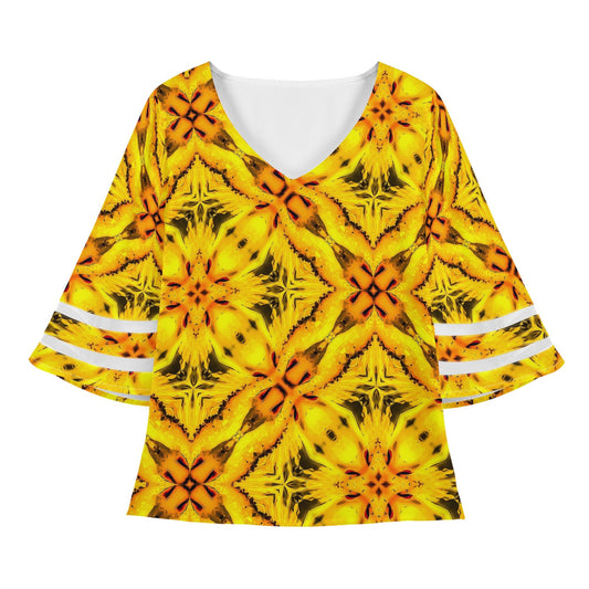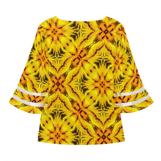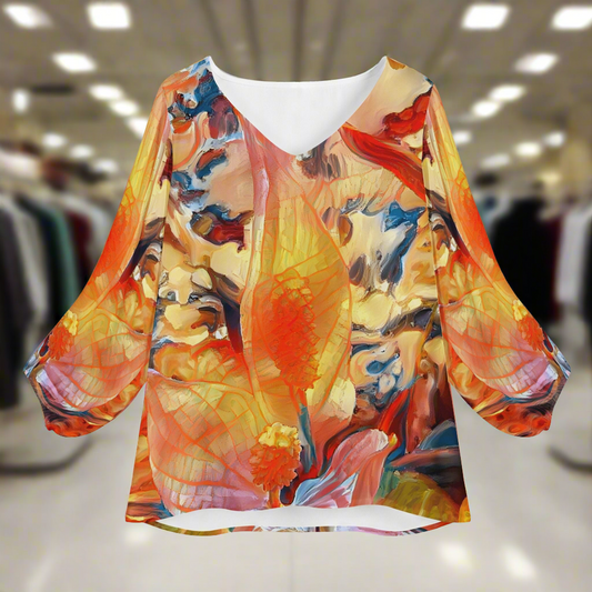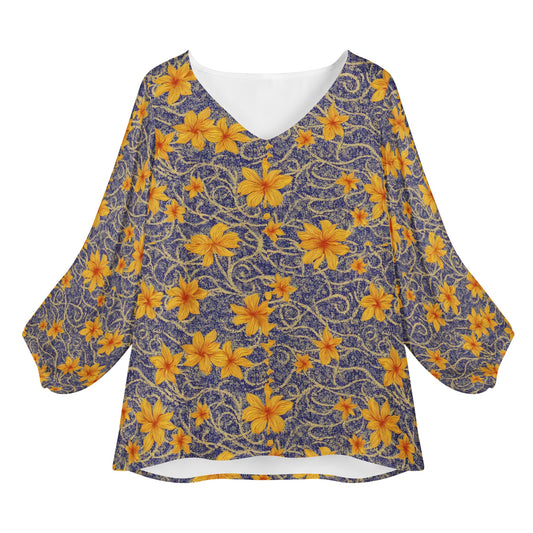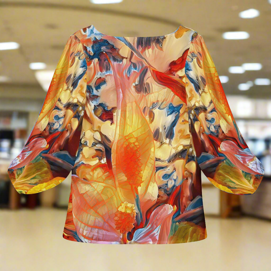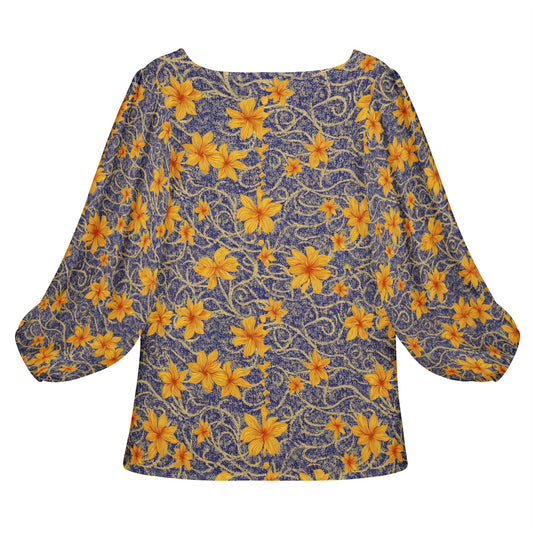 Women Long Sleeve Puff Sleeve Blouse - Golden Peace Lily