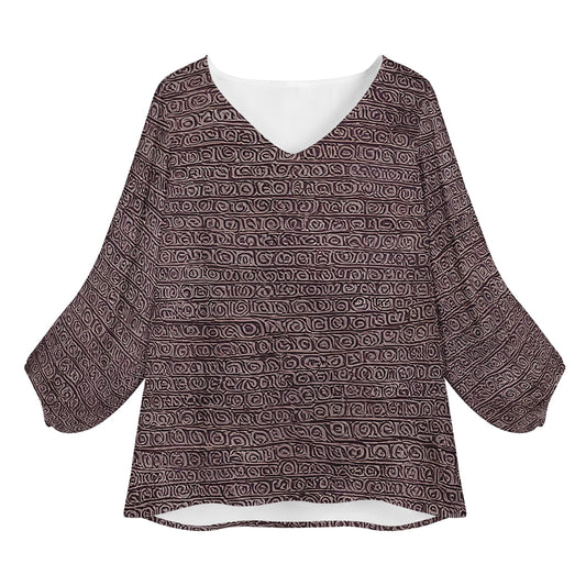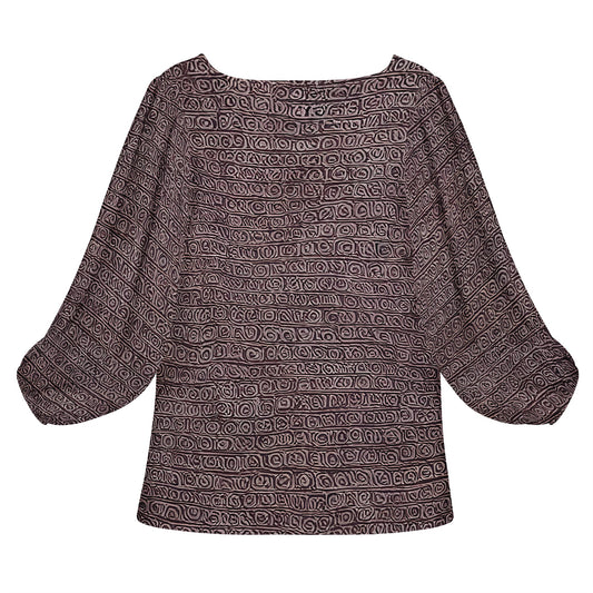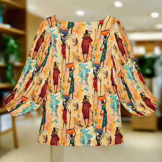 African Ethnic Mudcloth Women Long Sleeve Puff Sleeve Blouse