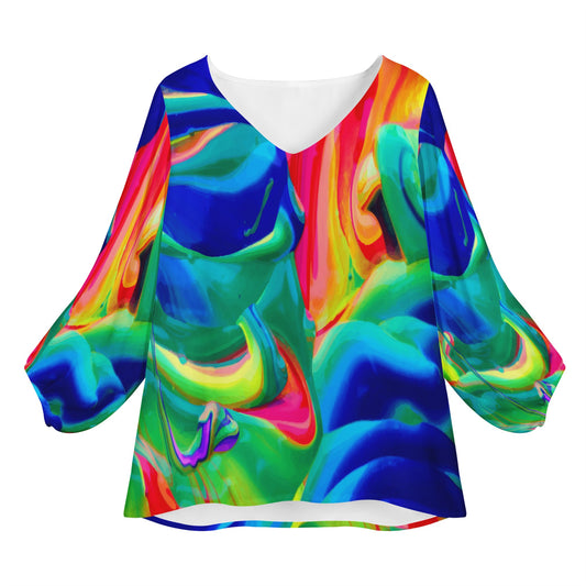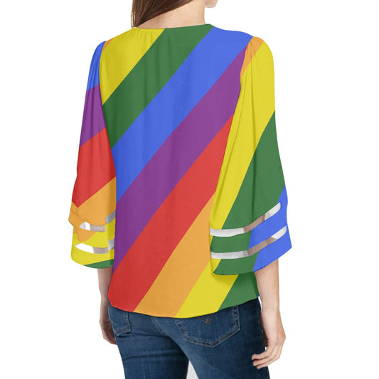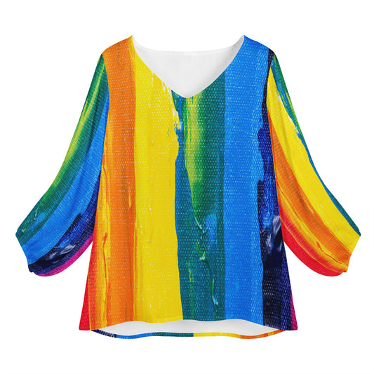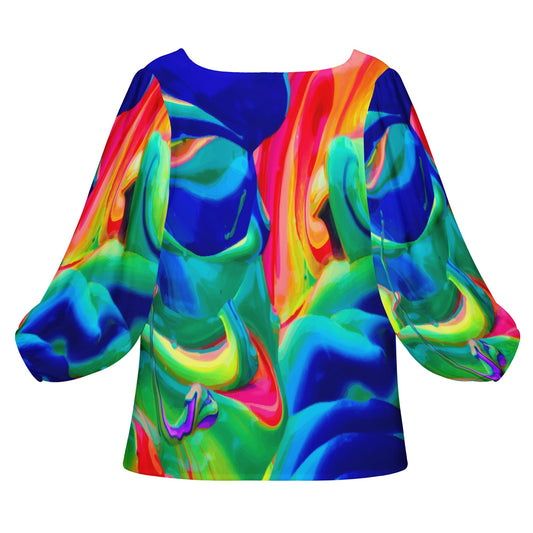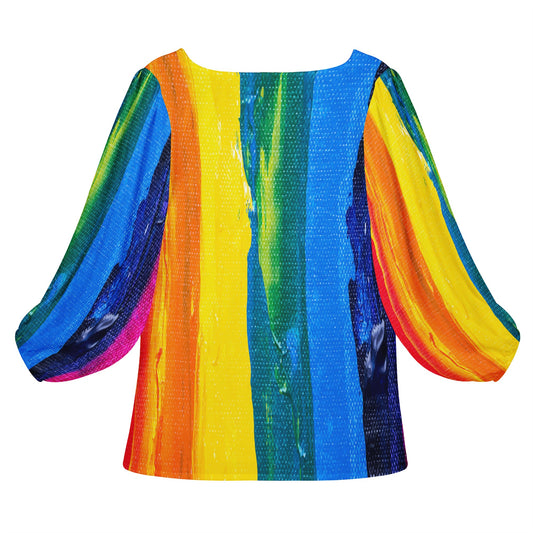 LGBTQ Rainbow Painting Women Long Sleeve Puff Sleeve Blouse