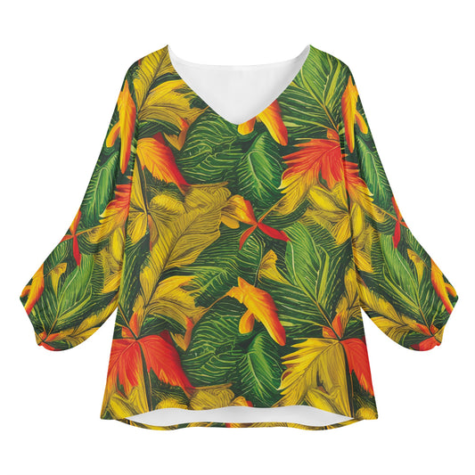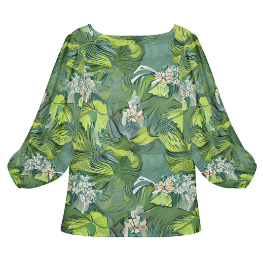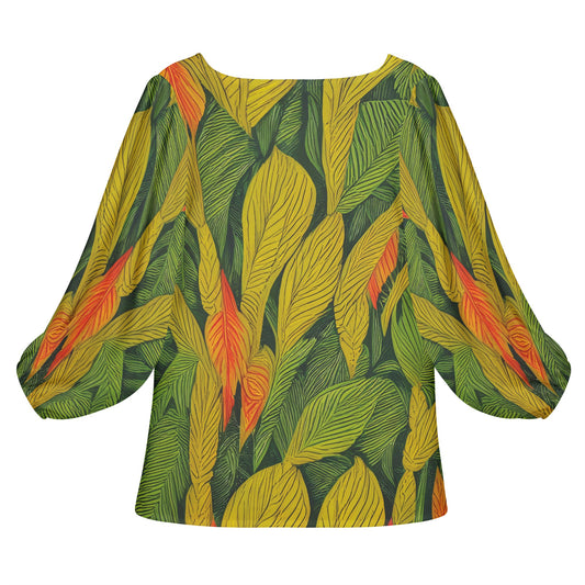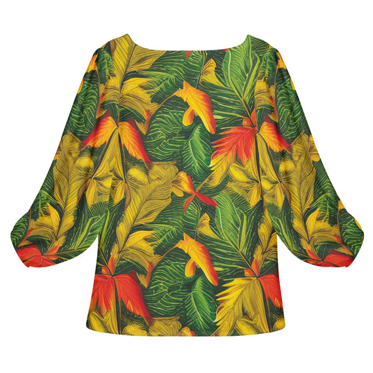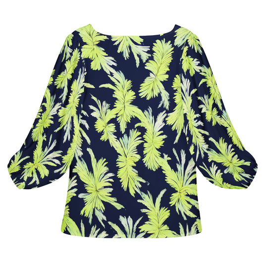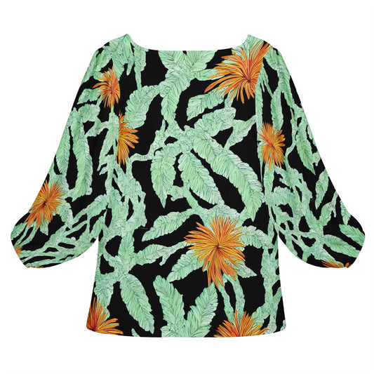 Tropical Women Long Sleeve Puff Sleeve Blouse
