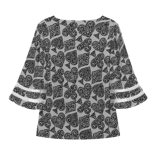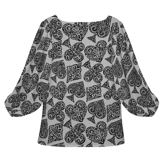 Poker Women Long Sleeve Puff Sleeve Blouse