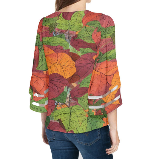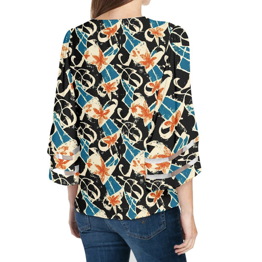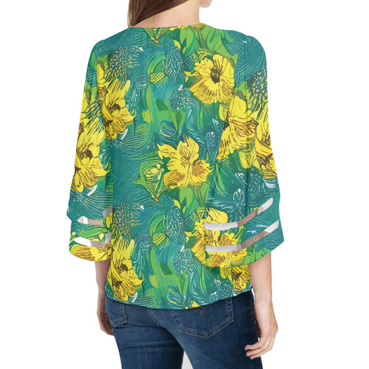 Green and Yellow Flowers Women Puff Sleeve Blouse