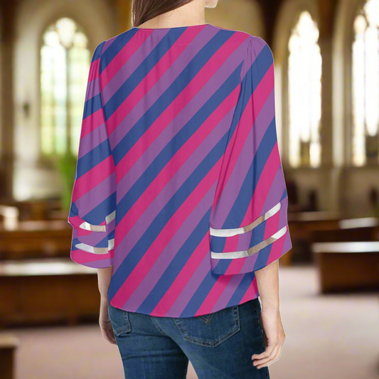 Handcrafted Purple Stripe Women Puff Sleeve Blouse
