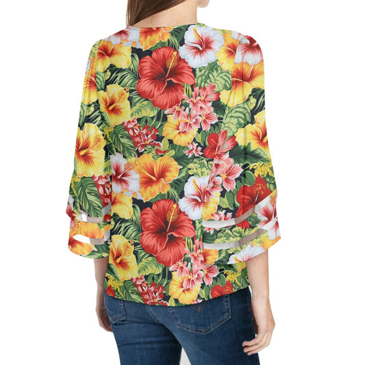 Yellow Hibiscus Women Puff Sleeve Blouse