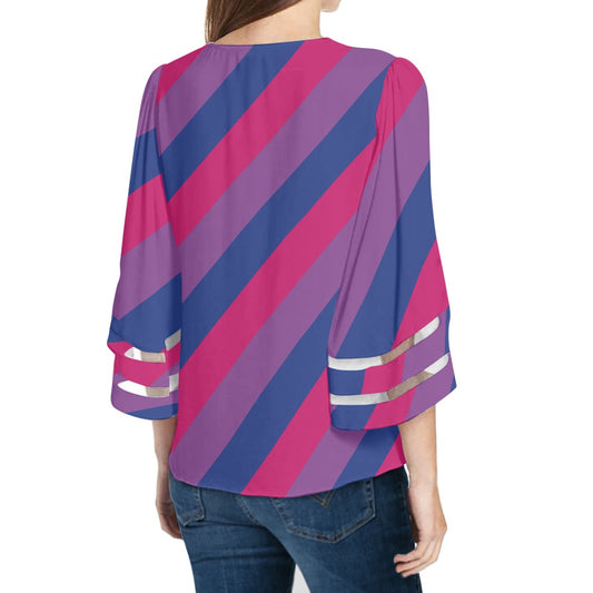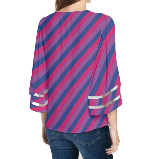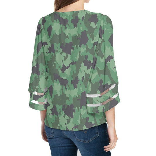 Pink and Green Monstera Women Puff Sleeve Blouse