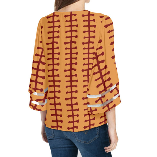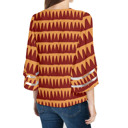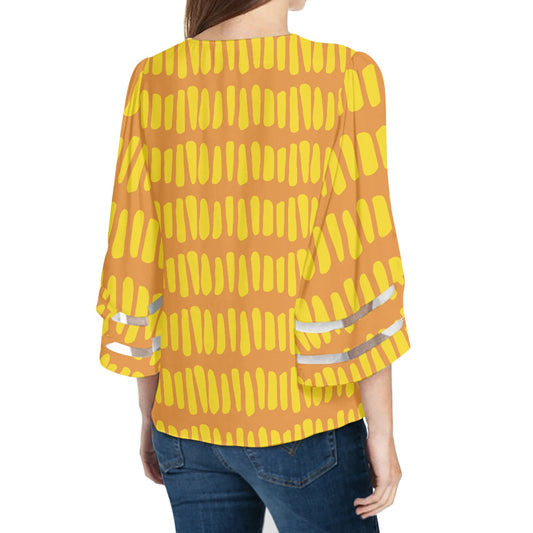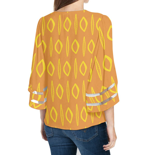 Yellow and Orange Mudcloth Women Puff Sleeve Blouse