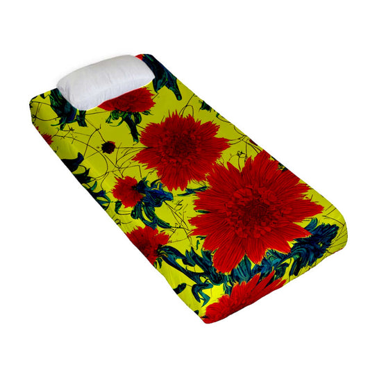 Red Flowers on Yellow Fitted Sheet (Single Size)