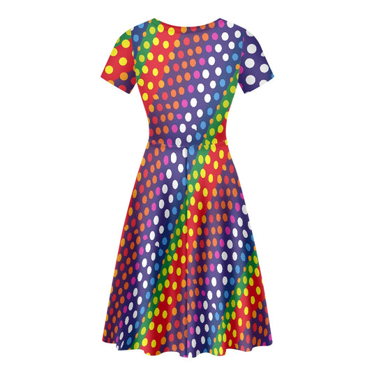 LGBTQ-Friendly Rainbow Polka Dot Scoop Neck Short Sleeve Woman Dress by Luxtrini