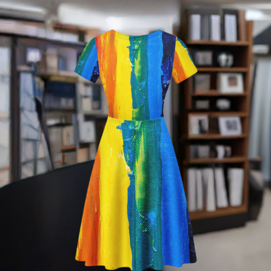 Rainbow Painting Women Scoop Neck Ruffle Dress