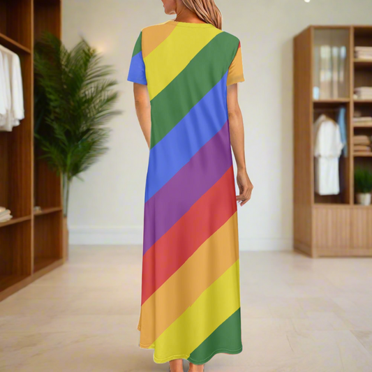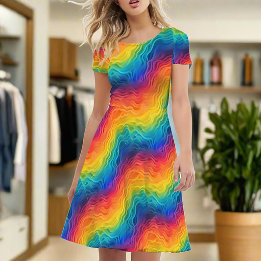 Rainbow Short Sleeve Dress - Colorful and Casual, Perfect for Summer, Available in Inclusive Sizes