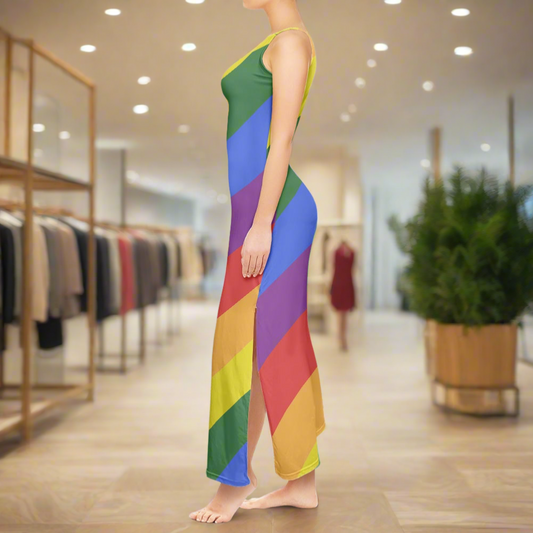 Rainbow Tank Dress for Women - Scoop Neckline, Sleeveless, Customizable, Perfect for Summer and Pride Events