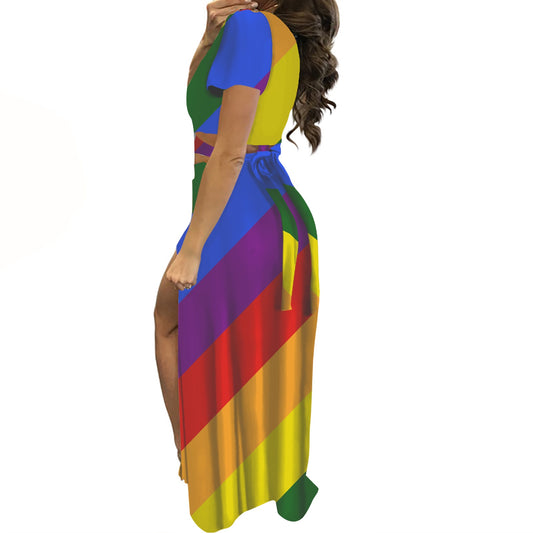 Rainbow Short sleeve long dress suit