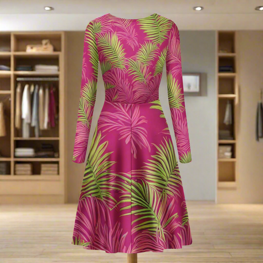 Elegant Sago Palm Long Sleeve Ruffle Scoop Neck Dress for Women