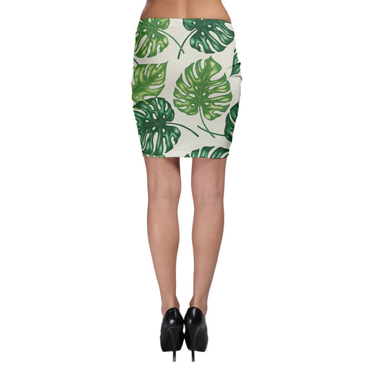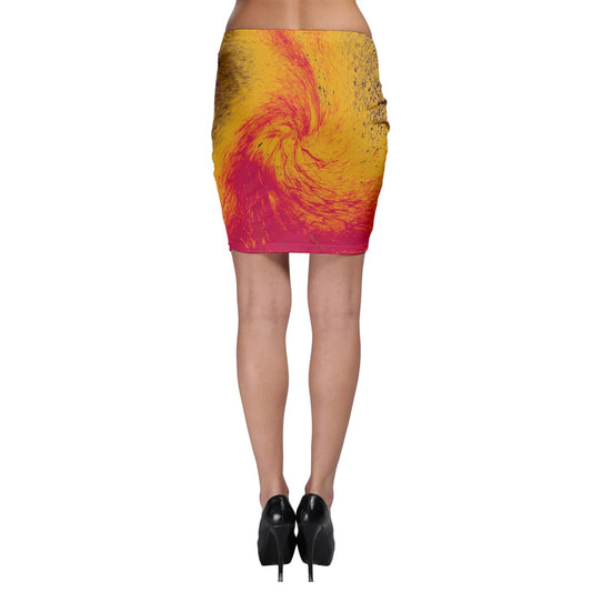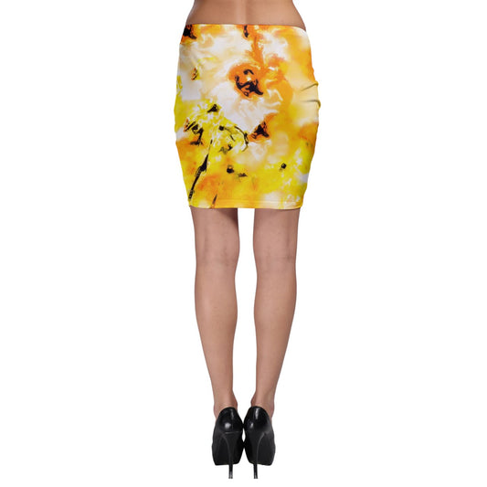Bodycon Skirt Yellow Hibiscus Impressionist