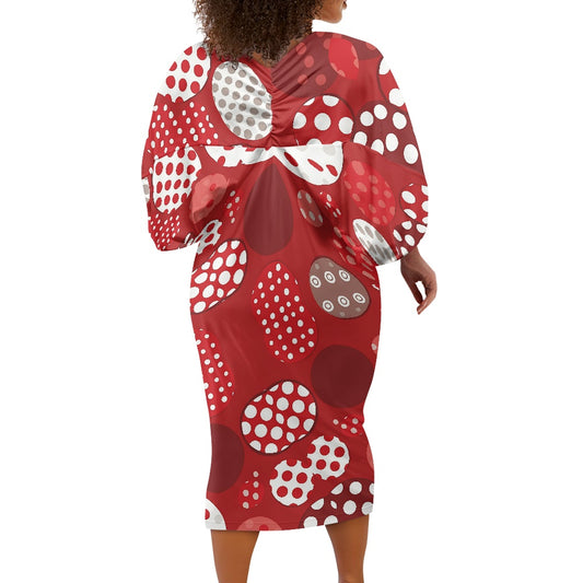 Red Polka Dot Ladies dolman sleeve bag hip skirt