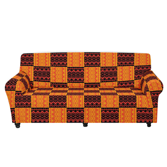 African Ethnic Mudcloth Orange Sofa Protector Cover L Size