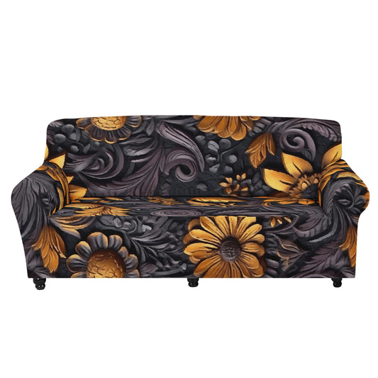 Gold Flowers Woodcut Sofa Protector Cover L Size