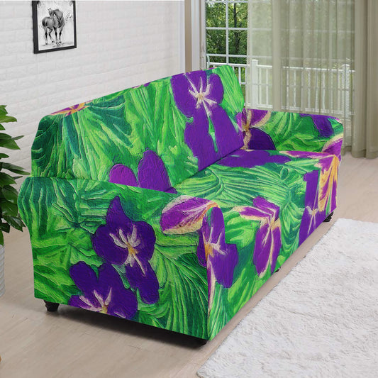 Blue Flag Iris on Green Sofa Protector Cover L Size