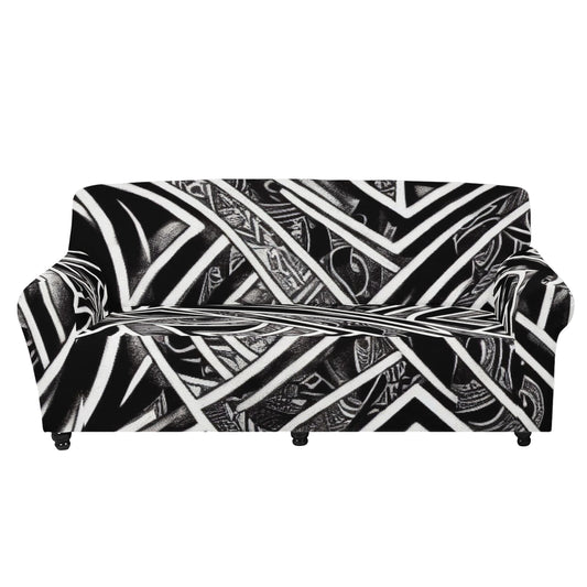 African Mud Print #16 Black and White Sofa Protector Cover L Size