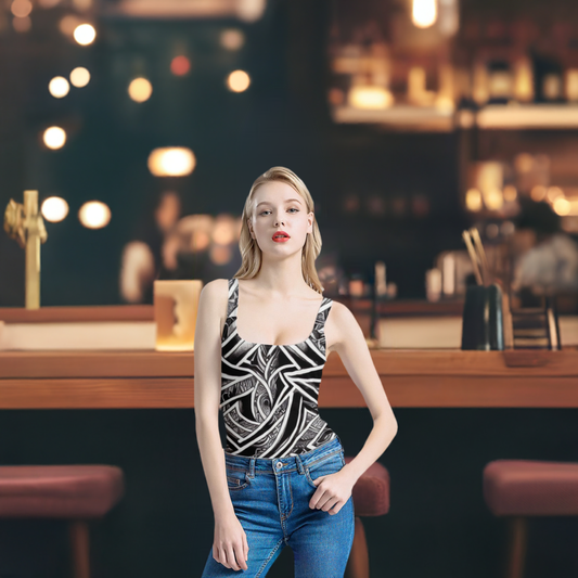 Black and White Polynesian Women’s One-Piece High Cut Swimsuit