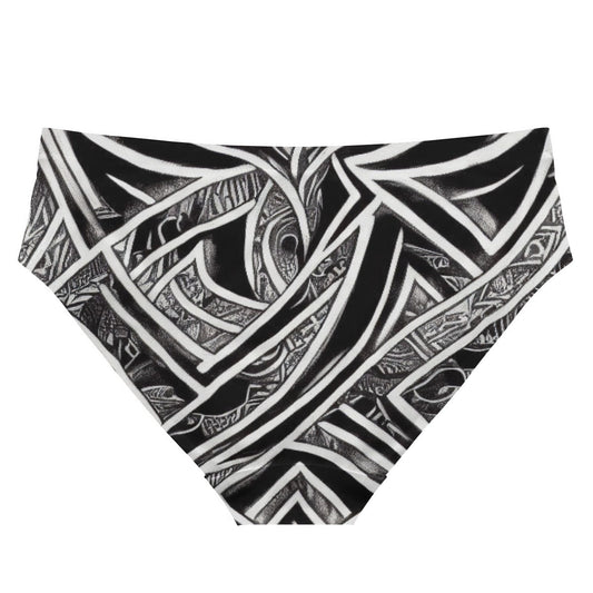 Black and White Polynesian Women's Triangle Bikini Swimsuit